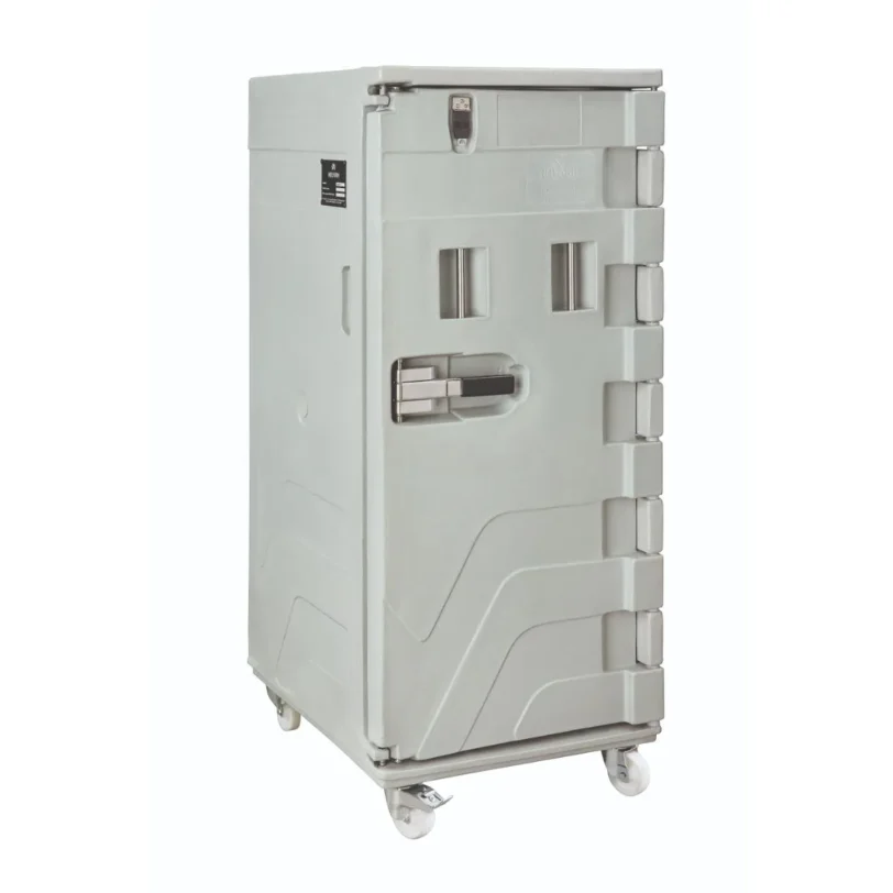 Contenedor isotérmico de apertura frontal, con capacidad de 500 litros para el transporte de productos a temperatura controlada. Fabricado con polietileno y aislado con espuma de poliuretano libre de CFC y HCFC, garantiza un correcto mantenimiento térmico, preservando las propiedades organolépticas de los alimentos y limitando los riesgos de proliferación bacteriana.